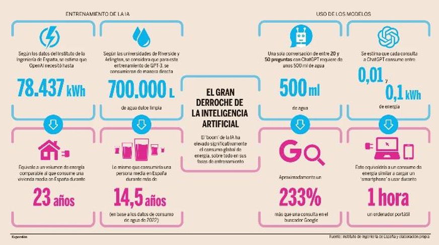 Además del alto consumo energético, la IA puede generar beneficios ambientales y sociales mediante la optimización de recursos en centros de datos; por ejemplo, el uso de técnicas de modelado y hardware más eficiente, como las implementadas en entrenamientos de modelos con AlphaZero, el desarrollo de alternativas alimentarias vegetales (NotCo) o las mejoras en la detección temprana de enfermedades (Nanox.AI), contribuyendo, de esta manera, a una atención sanitaria más eficiente y sostenible. Sin embargo, los efectos negativos también son relevantes: los fallos de sistemas autónomos como los robotaxis de Cruise y Waymo aumentan la congestión y el consumo; el entrenamiento de modelos generativos sigue implicando altos niveles de emisiones y uso de agua. La Agencia Internacional de la Energía (2023) proyecta que, para 2028, los centros de datos podrían consumir más de 325 TWh anuales, superando a países como Italia o Reino Unido.